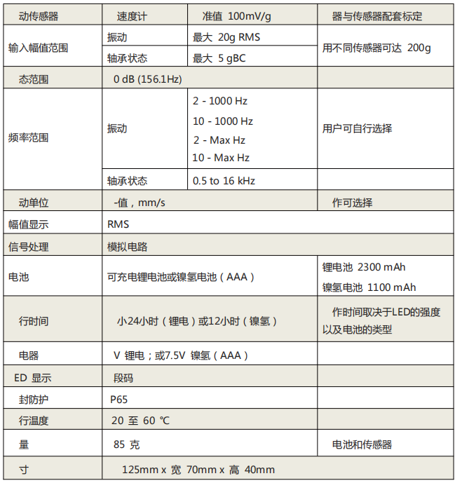 VIBER X1測振儀技術數據