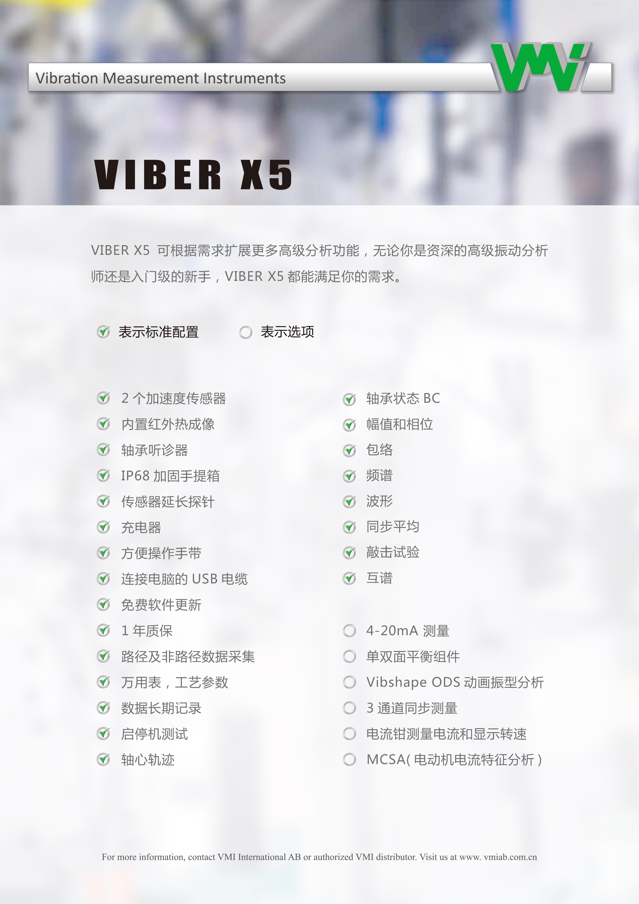 世界領先的智能設計與開發VMI 開發并制造振動測量儀器、機器狀態監測設備和軟件,同時考慮到用戶的需求與功能。我們的產品建立在 40 年的經驗基礎上開發,旨在實現所有必要的參數,以進行可靠的機器分析。